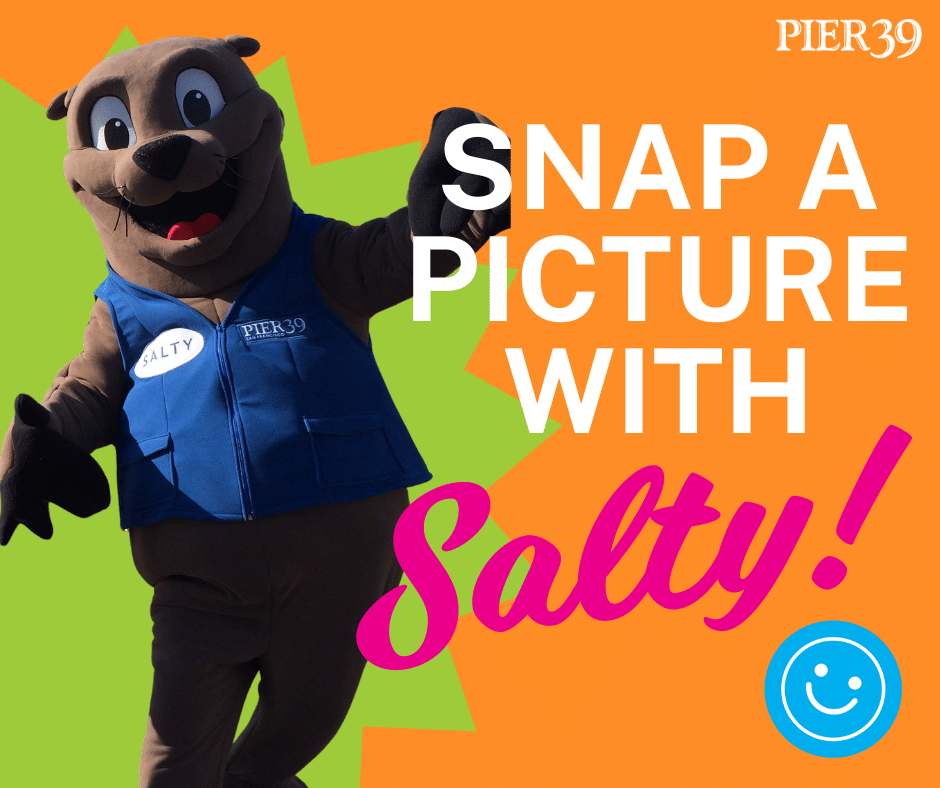 Keep your eye out for our beloved Salty the Sea Lion and friends who will be on The PIER to capture memories with you.