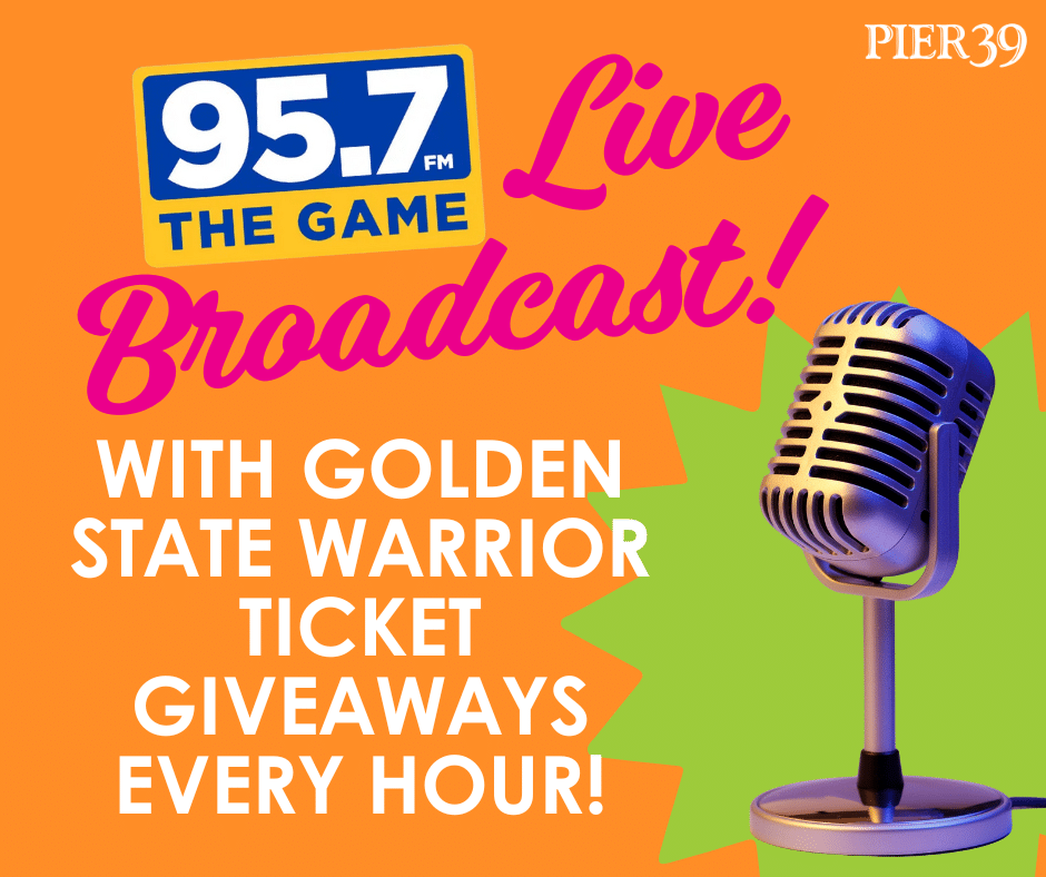 95.7 The Game will be doing a live broadcast from the Bay End of The PIER from 12:00 – 4:00 PM with chances to win Golden State Warriors Tickets every hour.