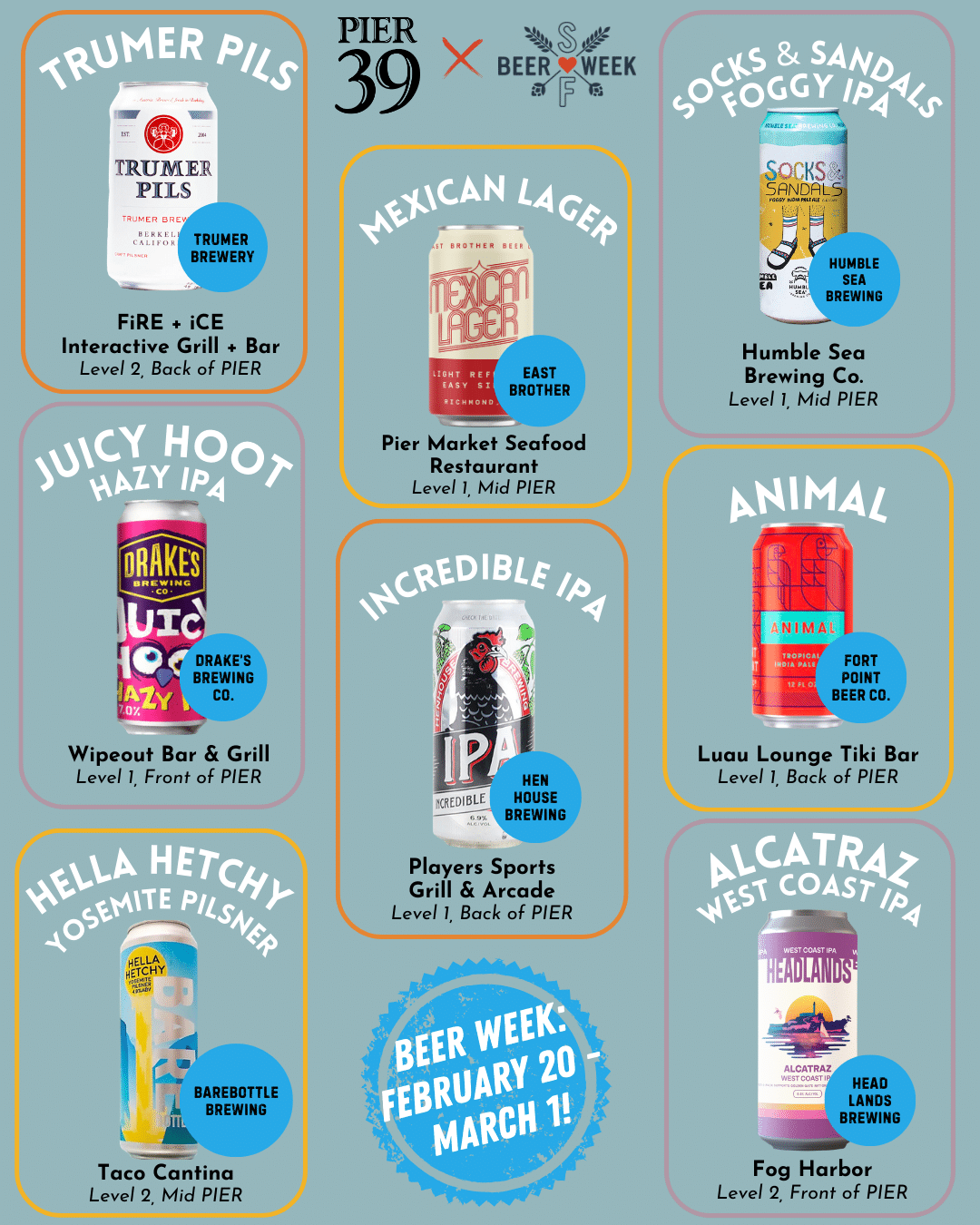We’re partnering up with Bay Area Brewers Guild to bring the SF Beer Week party to The PIER. From February 20th to March 1st, drink your way around PIER 39 with a Beer Week Passport featuring 8 specialty beers! 🍻 Explore participating locations, discover new favorites, and enjoy special pours along the way.