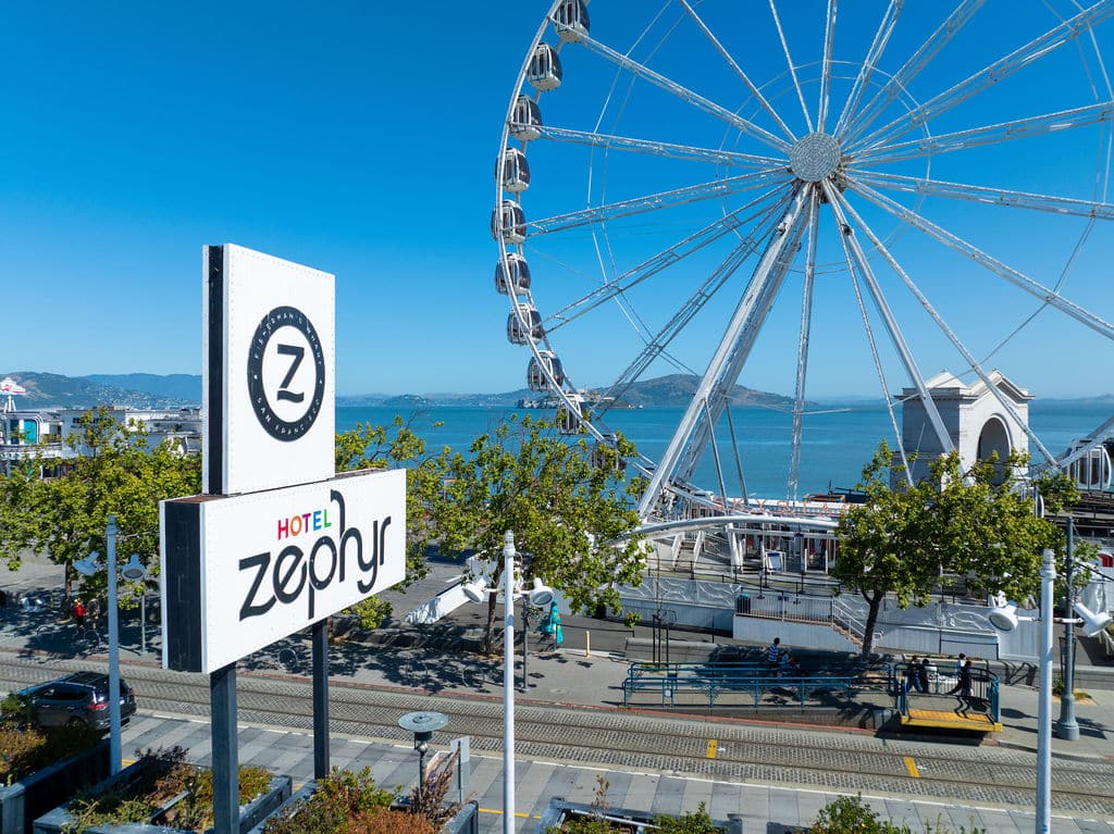 Located in the Historic Fisherman’s Wharf District of San Francisco, Hotel Zephyr has more waterfront views than almost any other hotel in San Francisco. Their “ship-yard chic” themed hotel is only steps away from PIER 39. You might even hear the sounds of the sea lions while staying here!