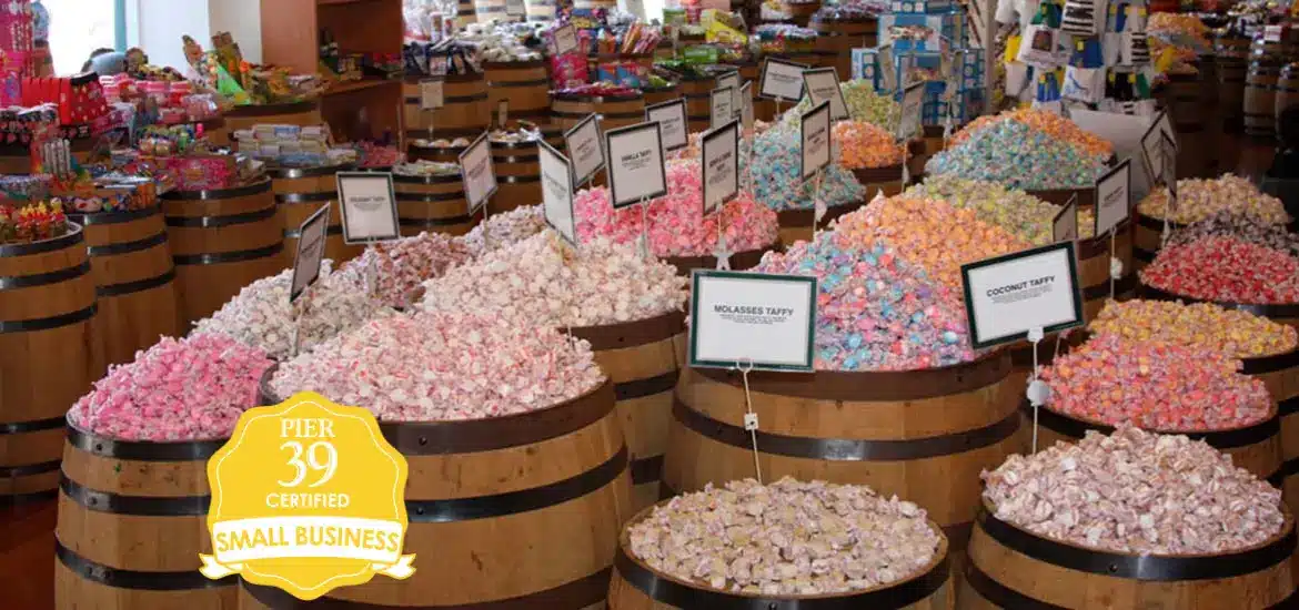 A candy-lovers’ paradise with a panoramic view from the Golden Gate Bridge to Alcatraz, Candy Baron features barrels and barrels of an incredible variety of candy, including a whopping 66 varieties of salt water taffy and unique hard-to-find candy you’ll remember from your childhood. Think “Pop Rocks” and Pez for example! All candy is $4.99 per half pound unless otherwise marked.