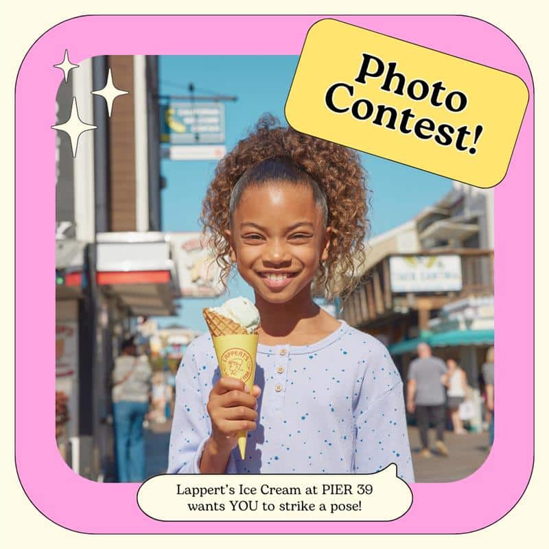 Whether it’s an indulgent shot by the Bay, a candid messy sundae moment, or a family photo full of laughter, we want to see how you enjoy Lappert’s Ice Cream at PIER 39. Make sure your smiling faces (and dripping ice cream cones) are front and center. Share your perfect scoop moment with us for a chance to win! Here’s how to enter: