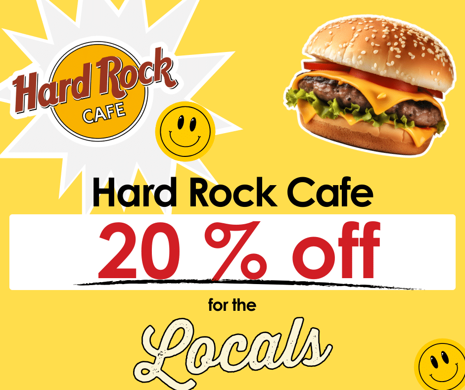 Show your local ID with your check to receive 20% off the total bill at Hard Rock Cafe at PIER 39!
