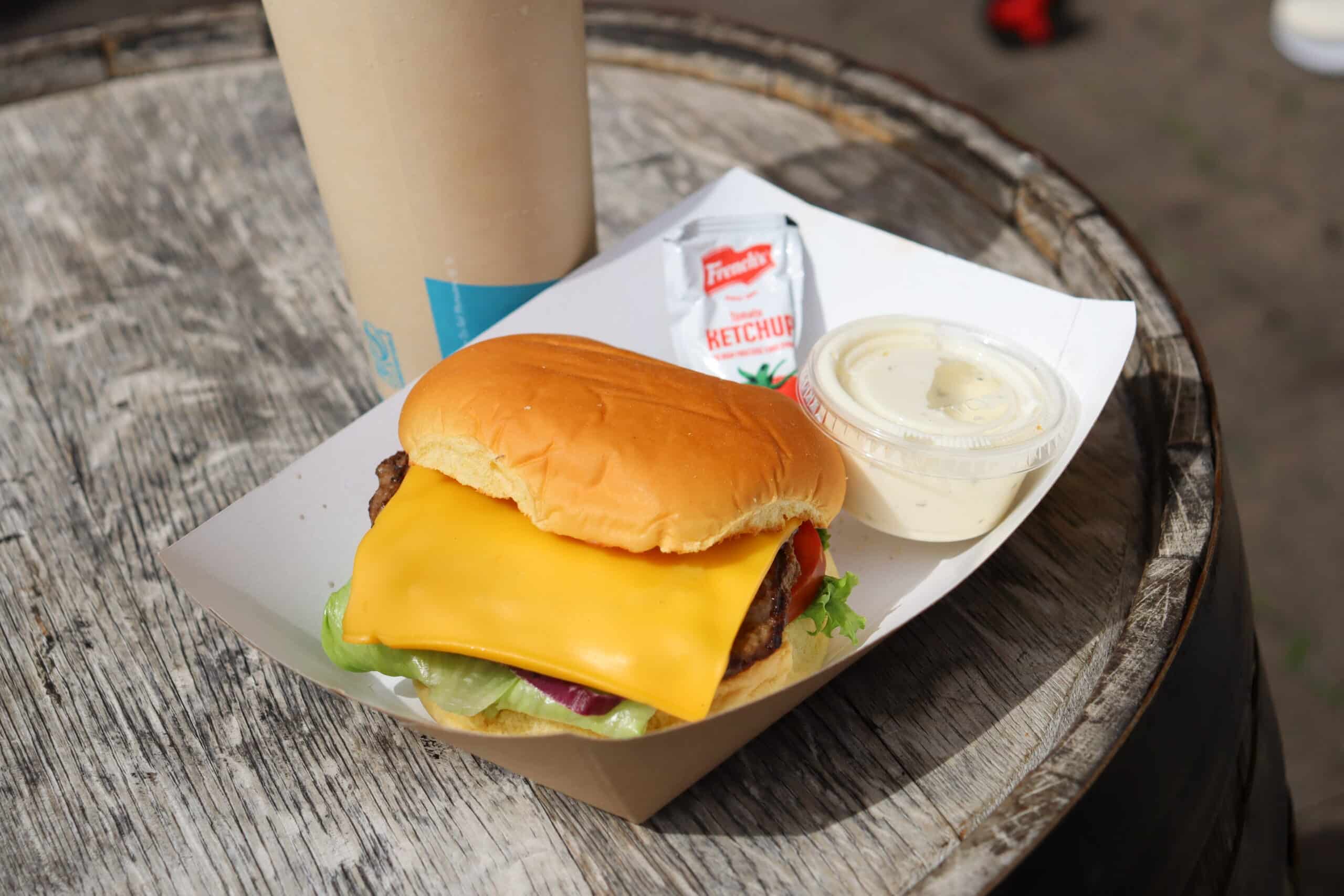 Choice of slice of pizza* OR hamburger OR cheeseburger. Includes small soft drink.