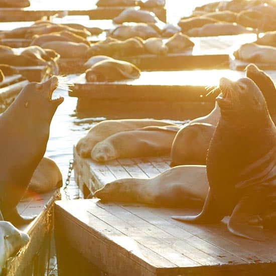 A few California sea lions began “hauling out” on PIER 39’s K-Dock shortly after the Loma Prieta earthquake hit San Francisco in October 1989. By January 1990, the boisterous barking pinnipeds started to arrive in droves and completely took over K-Dock, much to the exasperation of PIER 39’s Marina tenants.